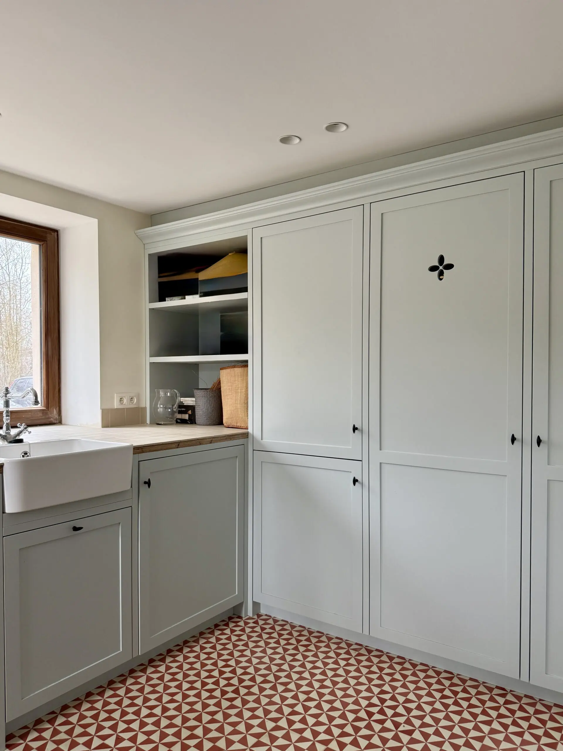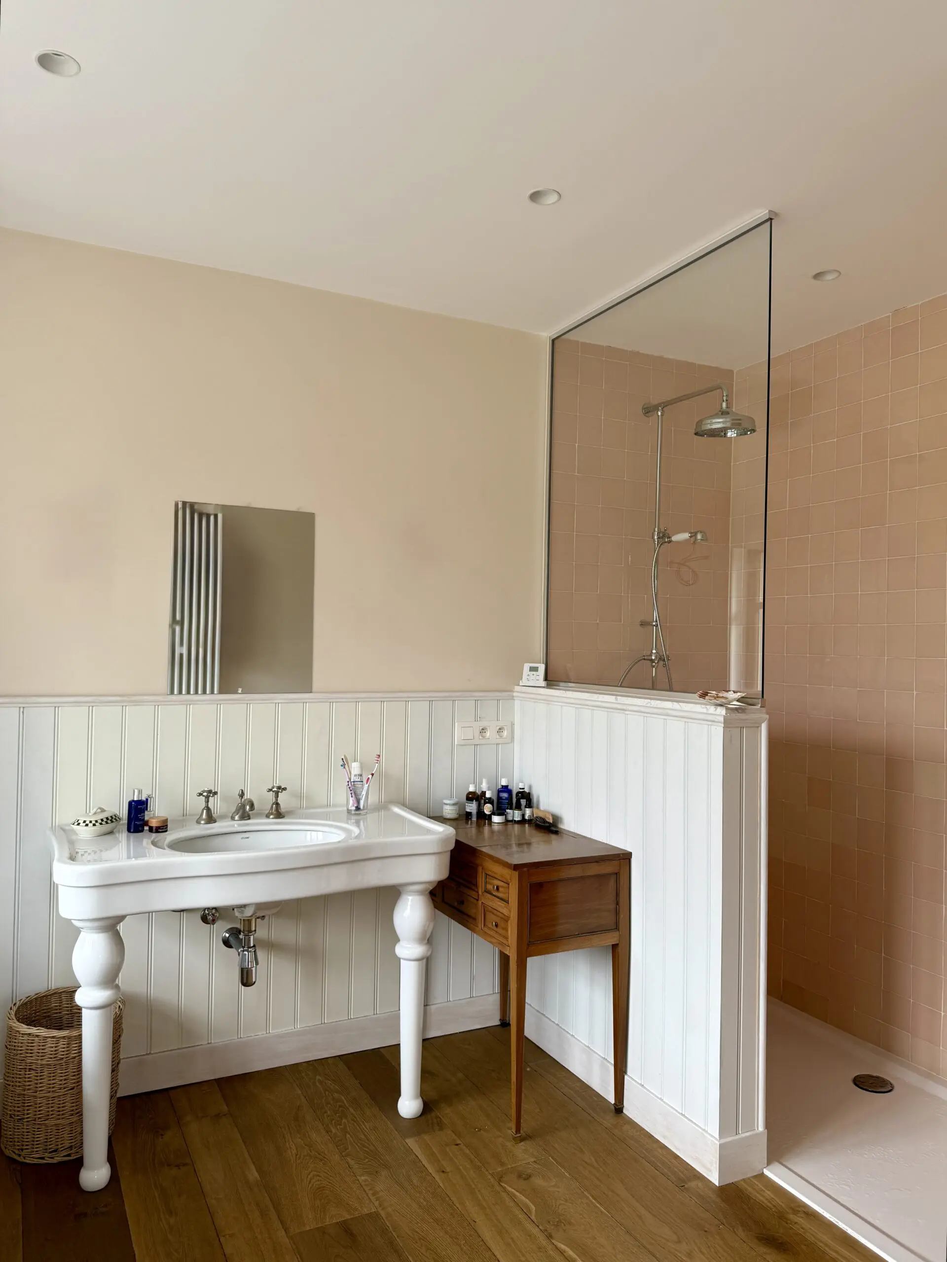 « On a voulu quelque chose d’épuré et de clair. Avec un carrelage déjà marqué, il ne fallait pas ajouter trop de foncé. Charlotte nous a conseillé les couleurs, et elle avait raison. »