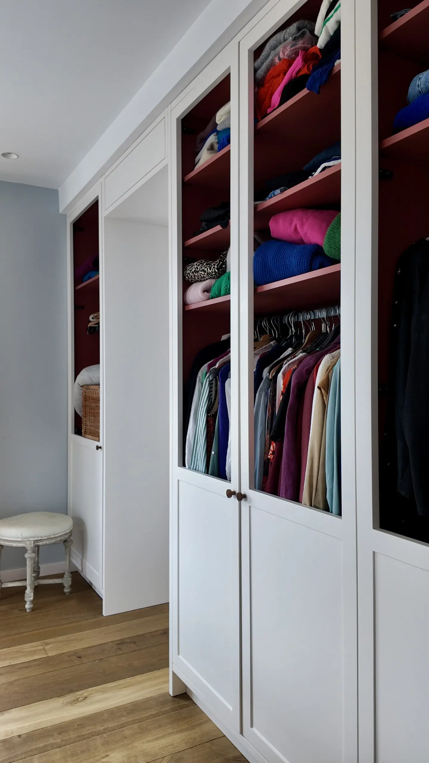 Cet aménagement des combles illustre le savoir-faire technique de Lacroix Intérieur, capable d’intégrer du mobilier personnalisé dans des volumes complexes, tout en respectant l’architecture existante.